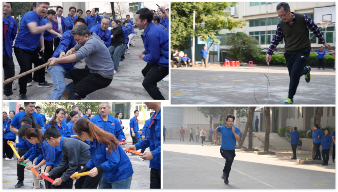團(tuán)體項目更是將運動會推向了震撼人心的高潮。在“拔河”中,我們目睹了力量的激烈較量;在“珠行萬里”中,我們見證了團(tuán)隊的緊密協(xié)作;“滾鐵環(huán)接力”和“10*100 米迎面接力”則完美展現(xiàn)了速度與默契的巧妙融合;“袋鼠運瓜”和“不倒森林”則是對團(tuán)隊協(xié)作能力的極致考驗。每一項活動皆是對團(tuán)隊精神的一次深刻詮釋與生動演繹。